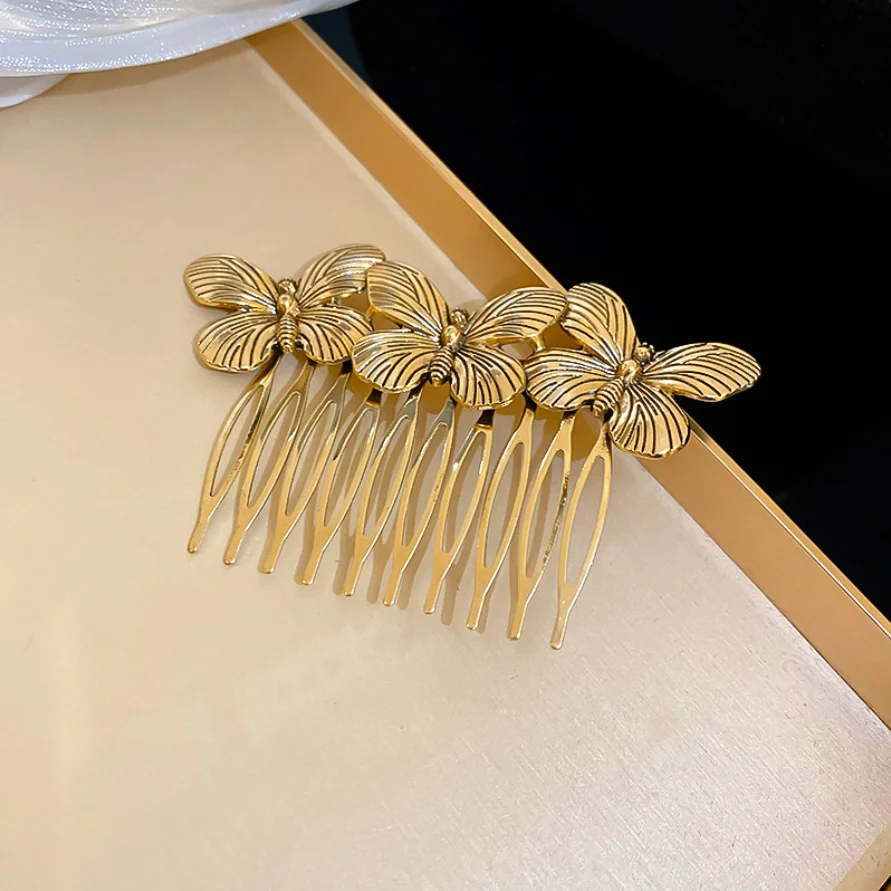Fashion Metal Butterfly Hair Combs For Women Gold Color Insect Bride Headdress Hair Jewelry Accessories Hairpins Headwear Gifts