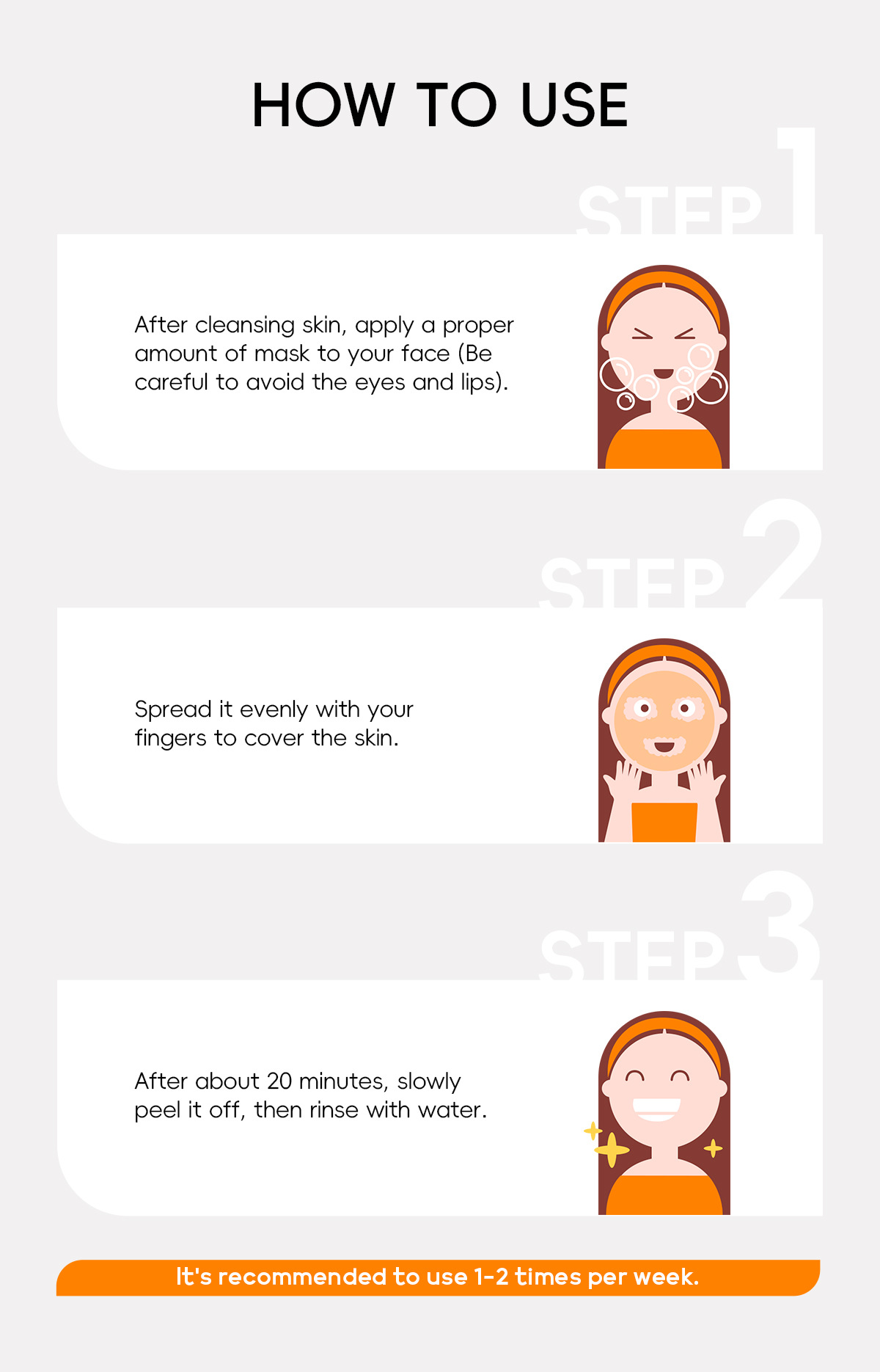After cleansing the skin, take an appropriate amount of mask to apply to the face, wait for 20-30 minutes and then gently tear off, wash with water can be. It can also be used as a sleeping mask
